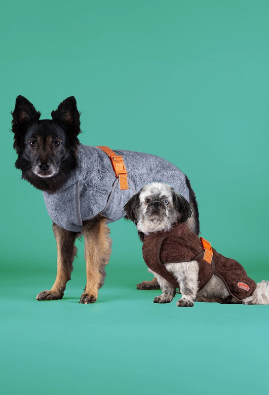 Brug vores tørredragter derhjemme eller på farten. Hold din hund varm og tør på vej hjem fra skov eller strand og optimer komforten med en stødabsorberende FlexDog tørremåtte. Opnå 90% tør pels på bare 15 minutter.