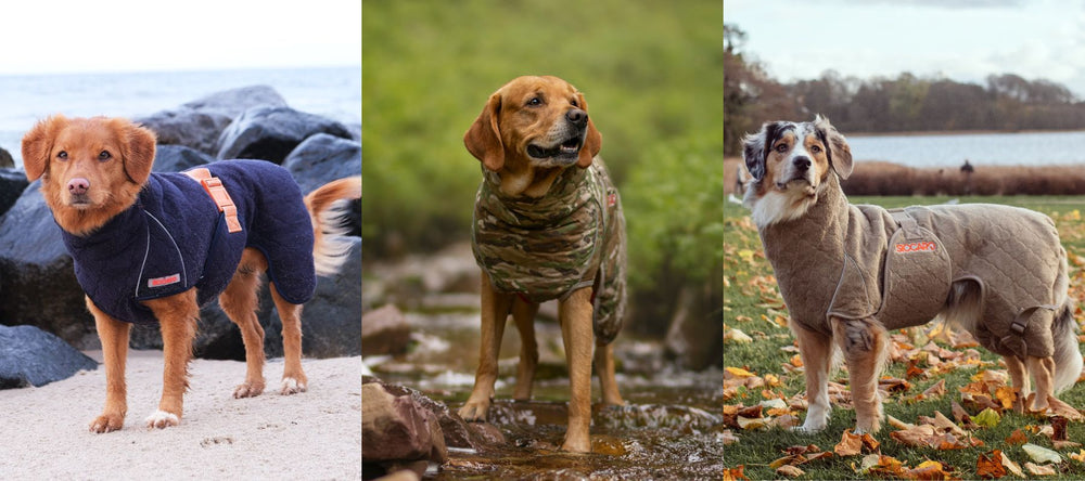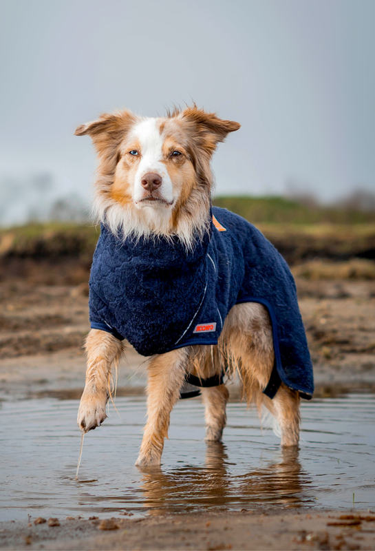 Brug vores tørredragter derhjemme eller på farten. Hold din hund varm og tør på vej hjem fra skov eller strand og optimer komforten med en stødabsorberende FlexDog tørremåtte. Opnå 90% tør pels på bare 15 minutter.