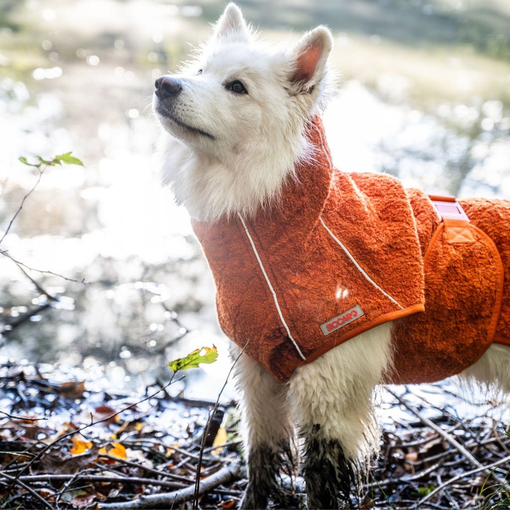 Vores superabsorberende tørredækken er perfekt efter bad, regn, svømmetur eller en mudret dag i marken. Hemmeligheden bag den effektive sugeevne er vores Wet2Dry-teknologi, som er udarbejdet efter flere års research og tests med målet om at skabe det mest absorberende materiale, der samtidig er lugtfri, holdbart og behageligt for hunden at have på.